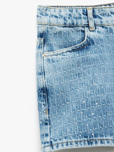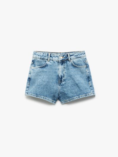 Cotton Shorts With Rhinestones